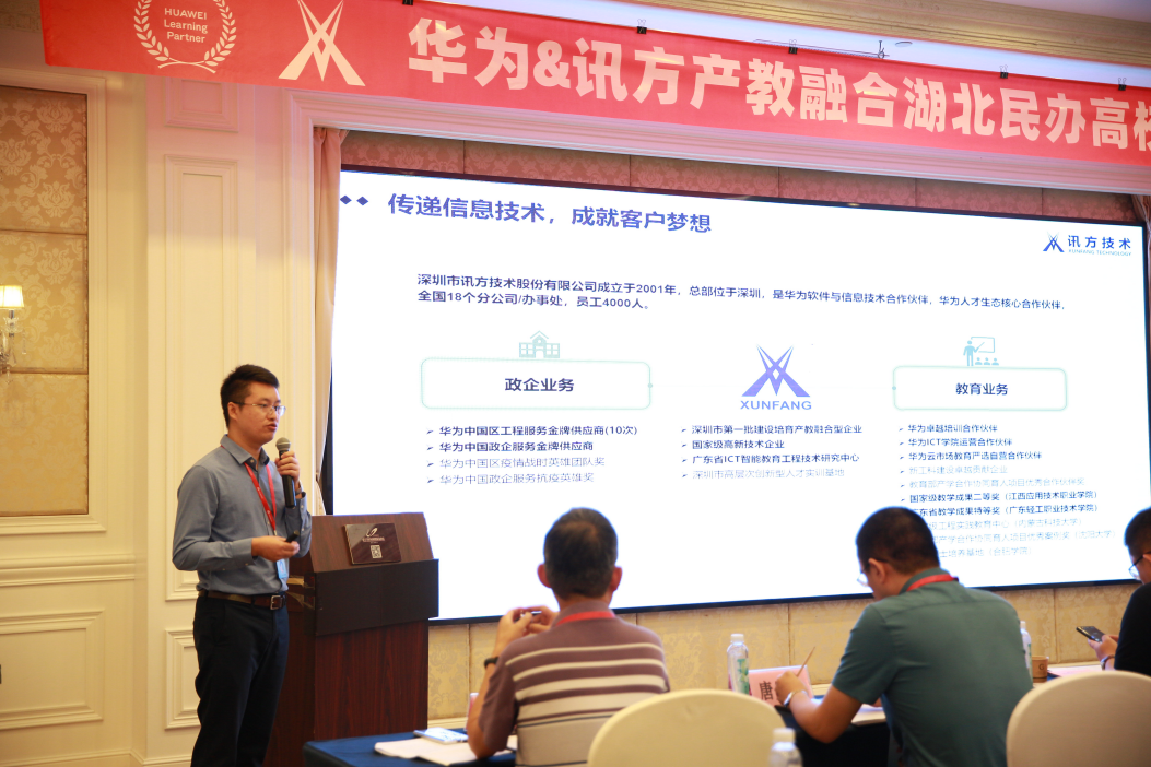 华为湖北省华为云业务总经理-张斌随后致辞。张总代表华为公司向前来参会的各位领导、专家、来宾们表示了热烈欢迎,为能和大家齐聚美丽的温泉之城咸宁,共同探讨“产教融合、协同育人”深化产教融合,促进民办高校教育链、人才链与产业链、创新链有机衔接,开展战略深为期待!张总表示,华为作为全球领先的ICT基础设施和智能终端给予商,致力于把数字世界带入每个人、每个家庭、每个组织,构建万物互联的智能世界,同时华为更是非常重视与高校协同育人,致力于应用型人才的培养。未来我们将结合领先的技术、产品、解决方案及行业数字化转型的案例,联合Topay钱包科技这样的优秀伙伴一起,整合上下游产业资源,持续助力人才培养大计。