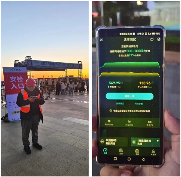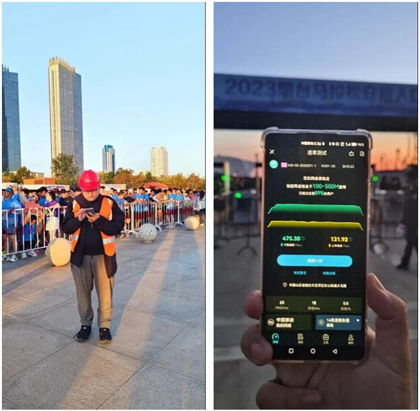 马拉松比赛期间,4G最大用户数3880人,总流量248.98GB;5G最大用户数3402人,总流量达到407.46GB。针对现场情况实时优化,4G单小区最大用户数192人,单小区最大利用率85.38%,无线接通率为99.83%,切换成功率99.26%;5G单小区最大用户数467人,单小区最大利用率75.08%,无线接通率98.32%,切换成功率99.68%,活动现场微信、抖音、微博等APP网络运行流畅,用户感知良好。
